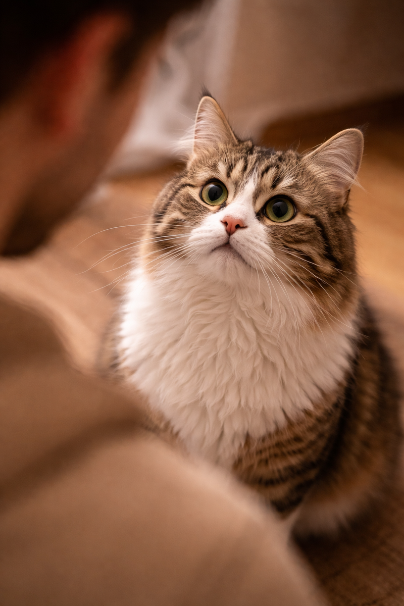 Кошка сидит напротив. Смотрит прямо в глаза. Не отводит взгляд. Почти не моргает. И в какой-то момент становится немного не по себе. Как будто она не просто смотрит - а что-то "считывает". И возникает вопрос: Это нормально или она что-то имеет в виду? Взгляд, который сложно игнорировать Иногда он долгий. Неподвижный. Почти "проникающий". Кажется, будто кошка оценивает вас. И это ощущение не случайно. Прямой взгляд - это сигнал Но его смысл зависит от контекста. Один и тот же взгляд может означать разное. И важно не только куда она смотрит, но и как именно. Причина №1 - наблюдение и концентрация Кошки постоянно анализируют окружающее. Они следят за: движениями жестами реакциями В этот момент кошка просто "считывает" вас. Это нормальное поведение хищника. Причина №2 - ожидание Очень часто кошка смотрит, когда ждёт. Например: еду внимание игру какое-то действие Этот взгляд можно перевести так: "Я жду. Сделай что-нибудь". Причина №3 - настороженность Иногда взгляд становится жёстким. Есл