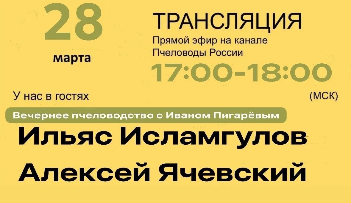 В 17.00 МСК 28 марта 2026 года в субботу. У нас в гостях будут Ильяс Исламгулов и Алексей Ячевский, пчеловоды из Башкортостана и Оренбуржской области. Они являются активными участниками группы Антипакет. В прямом эфире Ильяс Исламгулов и Алексей Ячевский расскажут об опыте борьбы пчеловодов Башкортостана и Оренбуржской области с так называемыми узбекпакетами, о сотрудничестве пчеловодов из разных регионов и о многом другом. 🔗Ссылка в Tg - https://dzen.ru/id/5c553f0f26710800ad36406d 🔗Ссылка в Vk - https://m.vk.com/wall-224831253_773?from=group #Антипакет #СтопПчелинаяИгла #СпасиОтечественнуюПчелу ПЧЕЛОВОДЫ РОССИИ