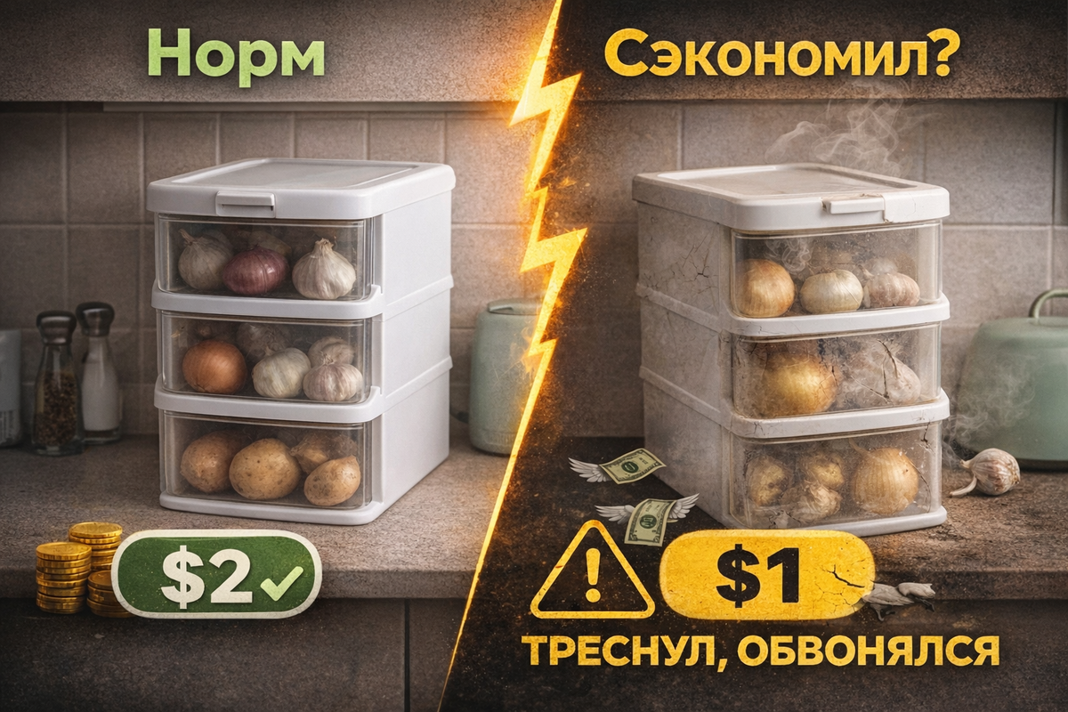 И это не ошибка. Я с этим постоянно сталкиваюсь. Берём простой пример — обычные органайзеры для кухни. Внешне одинаковые: те же формы, те же фото, даже упаковка похожая. Но когда начинаешь копать, оказывается, что это вообще разные вещи. Одна фабрика делает из нормального пластика, держит форму, не воняет, не трескается.