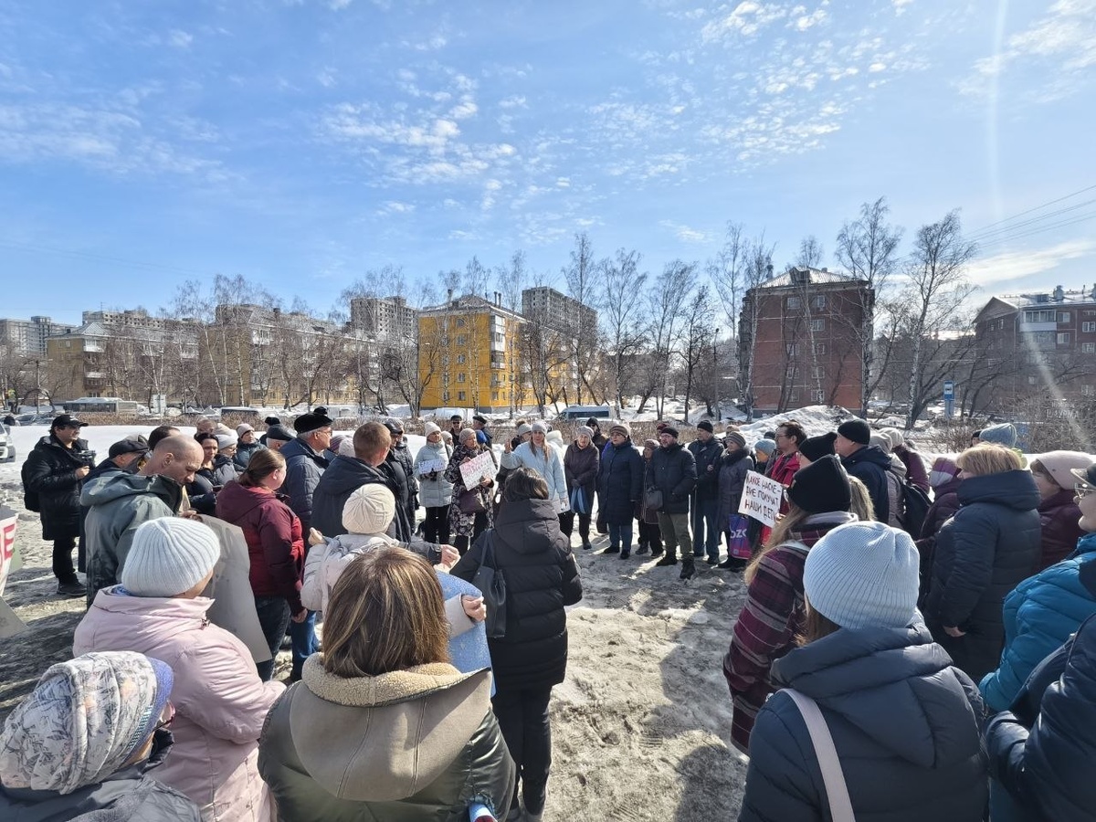 Пикет против вырубки деревьев у торгового центра на улице Объединения,27 прошёл в Новосибирске 28 марта. На акцию пришли около 80 человек, сообщил корреспондент «Сибирского экспресса». На плакатах говорилось: «Наши дети заслуживают чистый мир», «Кому земля – мать родная, а кому – товар», «Какое наследие получат наши дети?» Аллею, стоявшую более 50 лет, вырубили под застройку в начале 2026 года с разрешения мэрии под руководством Максима Кудрявцева («Единая Россия»). По оценкам жителей, уничтожено 54 дерева. (фото «Сибирского экспресса») Подписаться| Прислать новость| Помочь бустами