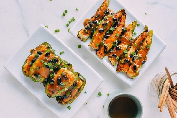 - Полейте перцы горячим соусом перед самой подачей. Можно подать их как закуску в духе димсама или как полноценное блюдо с рисом.