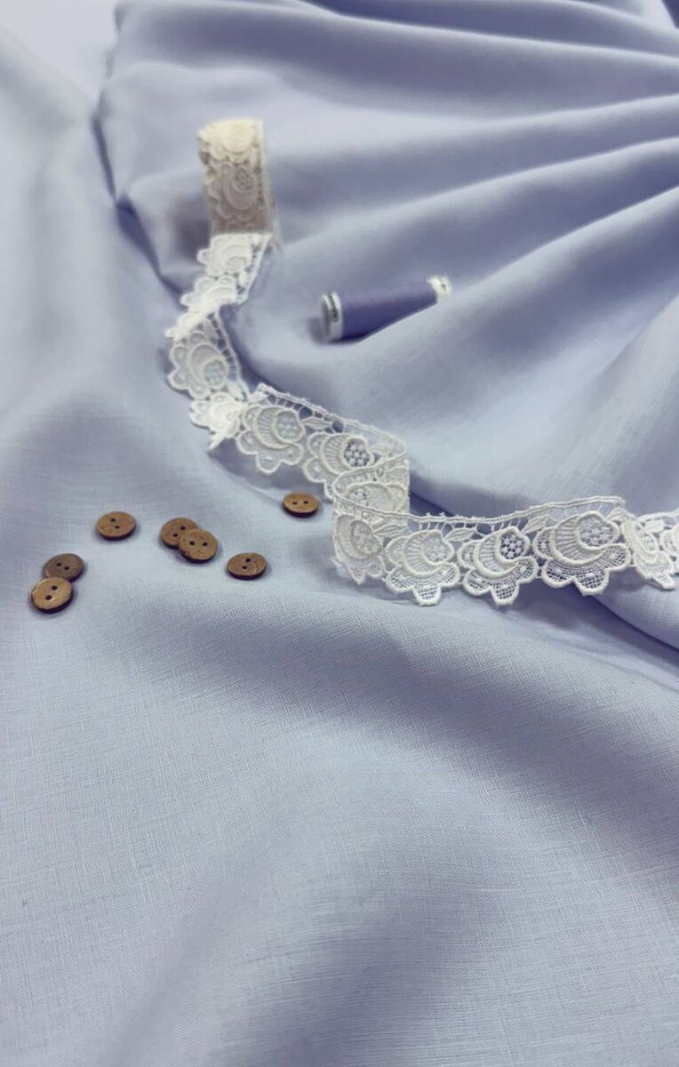 Итальянский 100% лён в нежно-голубом с легким сиреневым подтоном оттенке