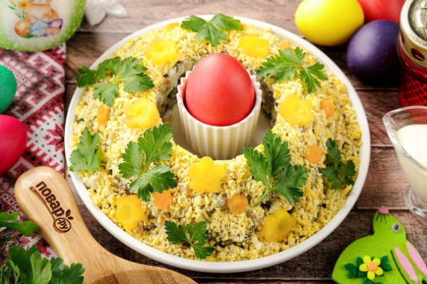 Назначение: На праздничный стол / Пасха Основной ингредиент: Рыба и морепродукты / Сельдь / Зелень Блюдо: Салаты