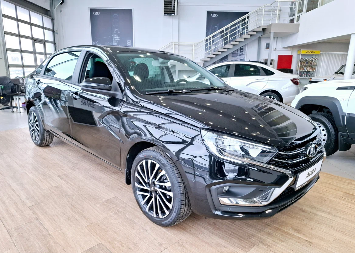 Серийный выпуск Лады Ауры ВАЗ запустил в 2024 году. От обычной Весты Аура отличается удлинённым на 25 сантиметров кузовом. Габариты седана 4690 x 1764 x 1505 мм, колёсная база равна 2885 мм. АвтоВАЗ позиционирует седан как флагмана модельной линейки, альтернативу Toyota Camry и других автомобилей D-класса. В передней подвеске седана классический Макферсон, в задней балка. Передние тормоза дисковые вентилируемые, задние — дисковые, стояночный тормоз ручной. Дорожный просвет 171–176 мм в зависимости от комплектации. Под капотом седана 16-клапанный мотор 1.8 л, 122 л. с., коробка вариатор. Седанов Лада Аура в наличии у дилера три, все 2025 года выпуска, один из них дилер выставил в шоурум.