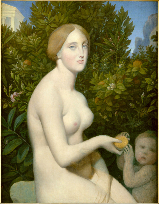 Как следует из названия, эта картина изображает Венеру, римскую богиню любви и плодородия. На заднем плане, за пышной зеленью, написанной Александром Десгоффом (1805–1882), учеником и соратником Жана-Огюста-Доминика Энгра (1780–1867), стоит классический храм. Эта деталь, а также присутствие Купидона, является недвусмысленным указанием на то, что обнаженная женщина на переднем плане — это действительно Венера. Однако в одной из своих записных книжек Энгр написал: "Эскиз Венеры, портрет", и подчеркнул слово "портрет", чтобы выделить жанр работы. Таким образом, это не является просто мифологической картиной. Кроме того, эта Венера, со специфическими чертами лица, подчеркивающими её овальное лицо и большие сине-серые глаза, мало похожа на стереотипных богов и богинь, которых Энгр обычно любил изображать. Мы даже знаем личность модели: это была госпожа Антония Балаи (1833–1901), дочь богатого члена парламента. Однако нам неизвестно, как Энгр связал обнаженное тело Венеры с узнаваемыми