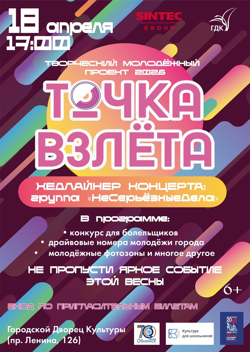 🚀18 апреля в 17:00 в ГДК в Обнинске пройдёт фестиваль «Точка взлёта
