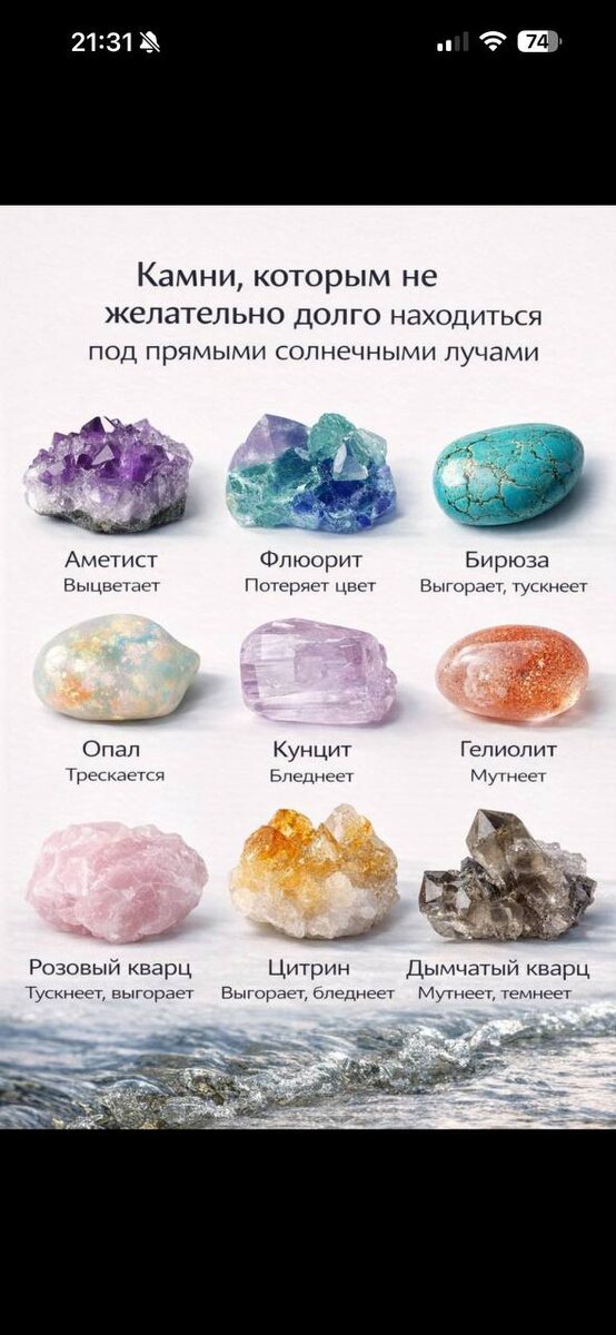 солнечные лучи при длительном воздействии могут быть губительны. Каждый весенне-летний сезон поступают вопросы, что случилось с минералом, он побледнел/выцвел, со мной что-то не так? Или просто минерал был тонированный. Нет, все так, не стоит беспокоиться, просто существует ряд ограничений для минералов по месту их хранения (подальше от прямых солнечных лучей), методам их чистки (огнем и землей универсально, вода и соль индивидуально для разных видов минералов). #spooshan