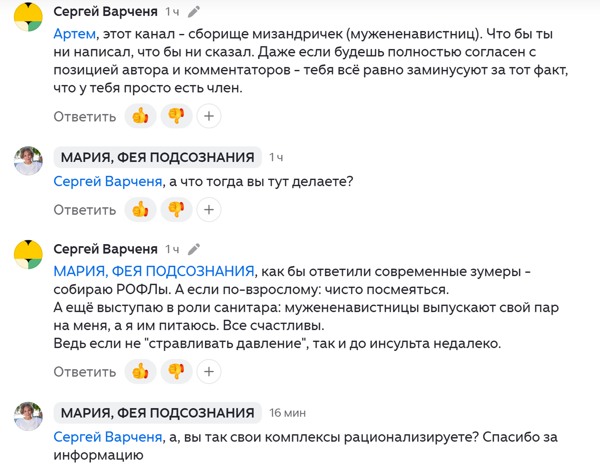 Знаете этот типаж? Он сидит в женских чатах. Не прячется, нет. Он приходит, как король вечеринки, которого никто не звал. Поливает грязью участниц, издевается над женщинами-блогерами, комментирует их статьи с видом уставшего эксперта по чужой жизни. На вопрос «зачем» у него есть два ответа. Для зумеров: «собираю РОФЛы». Для взрослых (так он думает): «чисто посмеяться». А дальше — жемчужина. Он объявляет себя санитаром леса интернета. Цитирую: «Мужененавистницы выпускают свой пар на меня, а я им питаюсь. Все счастливы. Если не стравливать давление, так и до инсульта недалеко». Мда. Звучит как гражданская позиция. На деле — как вампир на пенсии, который оправдывает свою подпитку заботой о чужих сосудах. Давайте разберем эту конструкцию. Без сантиментов. Потому что тут пахнет не перегаром благородства, а классическим психологическим дефицитом. Первое. «Санитар». Это гениальная подмена понятий (повыражаюсь психологическими терминами, извините).