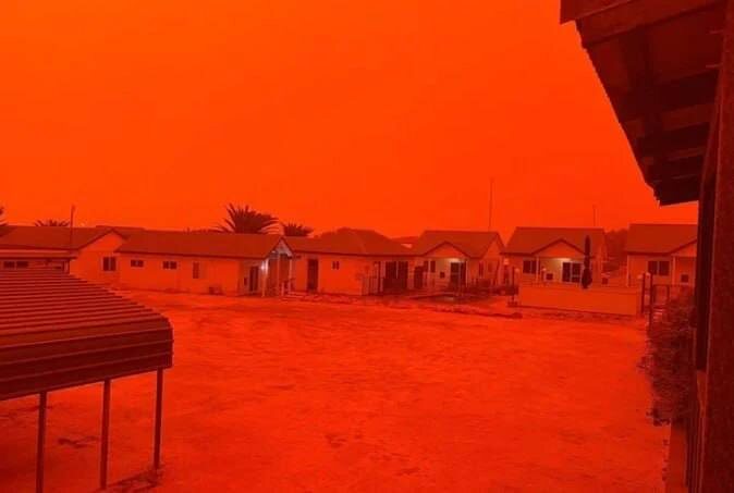 Тонны пыли поднялись в воздух под воздействием сильного ветра. Небо приобрело устрашающий красный оттенок. Жители города были шокированы масштабами природного явления. Подобные погодные условия напоминают апокалиптические сцены.