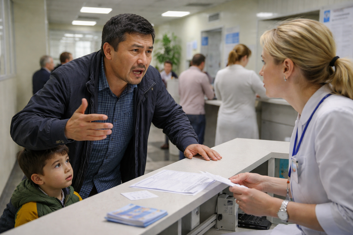 Переезд в Москву из Киргизии казался Акылбеку Жакшыбаеву верным шагом. Он получил паспорт гражданина РФ, перевез семью и был свято уверен: главные сложности позади. В его голове уютно устроилась мысль, что российское гражданство — это универсальный ключ, который открывает все двери: от соцвыплат до бесплатной медицины. Особенно когда речь шла о здоровье шестилетнего сына. Но реальность, как это часто бывает, любит бить по рукам за самоуверенность. Первая стена в поликлинике Семья перебралась из кыргызского села Кен-Булук под Бишкеком в столицу несколько лет назад. И всё шло более-менее гладко, пока мальчик не начал чахнуть на глазах: бесконечные простуды, кашель, бледный вид. Отец, наконец, собрался с духом и повел сына в ближайшую поликлинику. В регистратуре его ждал первый облом. На просьбу записать ребенка к врачу прозвучал сухой формальный ответ: «Полис ОМС есть? Нет? Тогда только платно». Акылбек опешил. Он начал закипать: как так, я же гражданин, налоги плачу, а моему пацану, кот