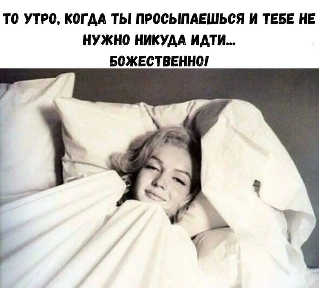 Просто суббота… Просто моё «не хочу» совпало с моим «неохота». Просто желание «никуда не идти» совпало с возможностью… Просто можно «погромче"лень сделать и выключить «звук» совести.. Просто можно все, что захочется Пускать солнечных зайчиков и до обеда ворочаться. Разложить по полочкам мысли… Позитивно подумать о новой жизни… О той, которая с понедельника… А пока — просто суббота… И здорово, что моё «не хочу» наконец-то совпало с моим «неохота»… Оксана Зет. Доброе утро, друзья. Вот такое у меня сегодня настроение. Неторопливое, сонное , хочется поспать и просто пожелать и никуда не торопиться. Впереди ещё весь день со своими заботами и делами, а сейчас просто хочется еще уснуть на часик. У вас какое настроение и какие планы на сегодня? Позвольте сделать себе то, что хочется, а не то что нужно. Что нужно всё равно сделаете, но попозже, а утром, в выходной можно сделать то, что хочется. Всем хорошего дня и отличного настроения.