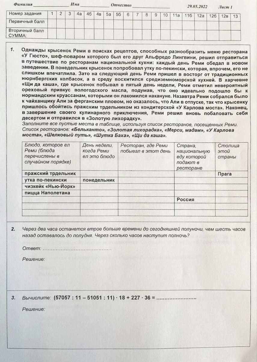 Вариант вступительной работы в 610 гимназию (2022 г).