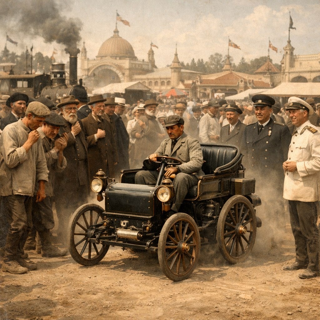 Представьте себе Нижний Новгород конца XIX века. Июльская жара 1896 года, на всероссийской выставке — шум, гам, купцы в сюртуках, крестьяне в картузах. И вдруг среди привычных паровозов и сельскохозяйственных машин появляется нечто, не похожее ни на что. Небольшой экипаж, больше похожий на пролетку, но без лошади, с таинственным бензиновым мотором, движется сам собой. Зеваки крестятся, техническая интеллигенция ахает, а чиновники снисходительно улыбаются: «игрушка, не более».