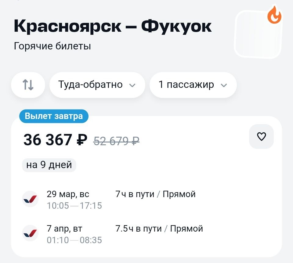 Вылет с утреца. https://aviasales.tpm.lv/AsQbiSkw #PQC @KJA