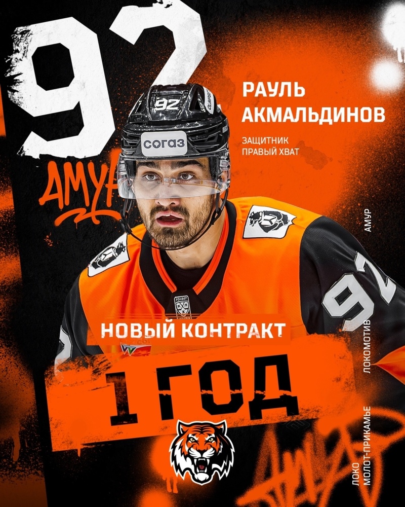 Рауль Акмальдинов подписал новый контракт с «Амуром». Хабаровская команда в текущем сезоне не попала в плей-офф, а потому заниматься комплектованием состава на следующий чемпионат может уже сейчас. Ранее портал ЯрНьюс уже писал о желании хабаровчан заполучить в свои ряды воспитанника ярославской школы хоккея Ярослава Лихачева. Вот только форвард, вполне возможно, летом вновь будет пробовать пробиться в основу родного клуба. А вот еще один бывший игрок «железнодорожников» предпочел «синицу в руке». Накануне пресс-служба «Амура» сообщила о подписании нового годичного контракта с Раулем Акмальдиновым. Этот защитник в течение трех сезонов играл в системе ярославского клуба – за «Локомотив» и «Молот». В составе «железнодорожников» игрок провел в регулярных чемпионатах 20 матчей, в которых забросил 1 шайбу и сделал 1 голевую передачу. В нынешнем сезоне на счету Акмальдинова 1 гол и 2 точных паса в 26 встречах в составе «Амура». Играл он и во Всероссийской хоккейной лиге, где защищал цвета фа