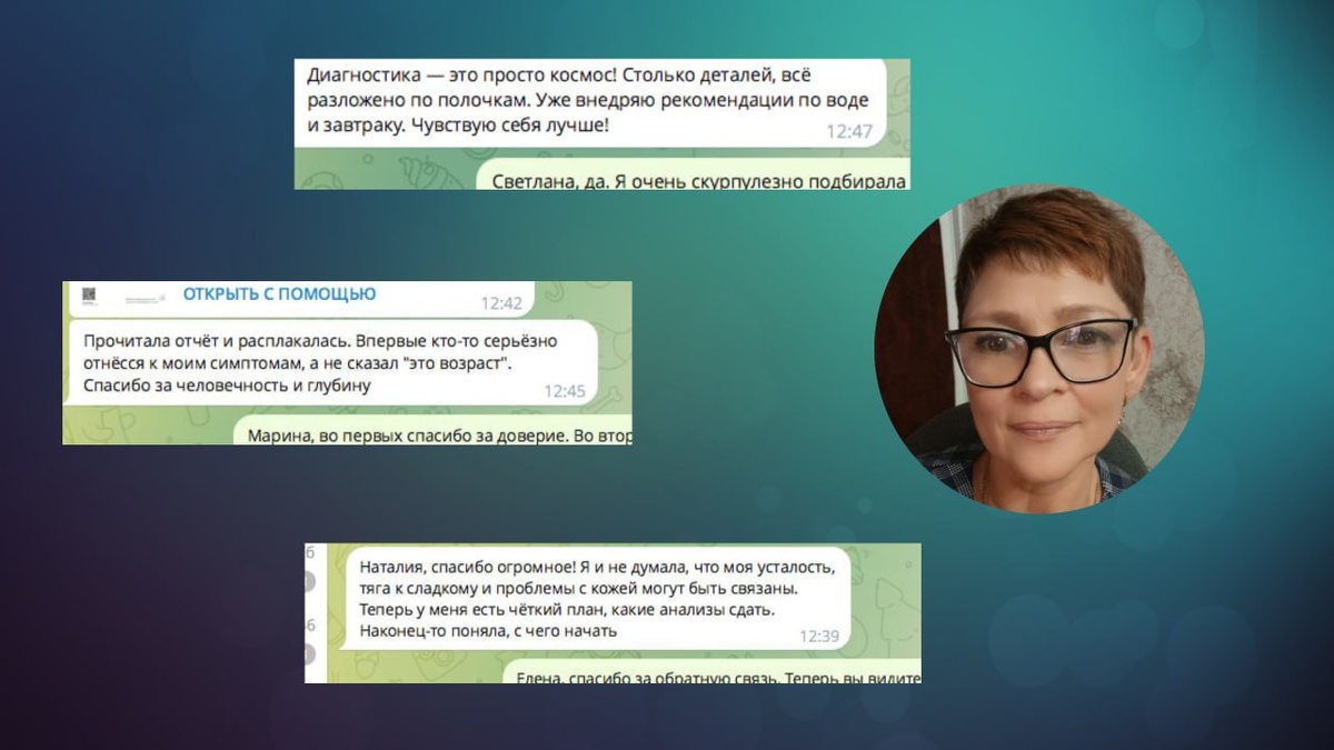 Девочки, первые участницы уже получают свои отчёты. Делюсь отзывами: Елена: «Наталия, спасибо огромное! Я и не думала, что моя усталость, тяга к сладкому и проблемы с кожей могут быть связаны. Теперь у меня есть чёткий план, какие анализы сдать. Наконец-то поняла, с чего начать!» Марина: «Прочитала отчёт и расплакалась. Впервые кто-то серьёзно отнёсся к моим симптомам, а не сказал "это возраст". Спасибо за человечность и глубину». Светлана: «Диагностика — это просто космос! Столько деталей, всё разложено по полочкам. Уже внедряю рекомендации по воде и завтраку. Чувствую себя лучше!» Хочешь так же? 👉 ССЫЛКА НА ДИАГНОСТИКУ Осталось 3 места. Мои каналы в МАХ⤵ 🦋 Здоровые Советы Нутрициолога 🦋 Виоргон - чудо жизни в одной капле