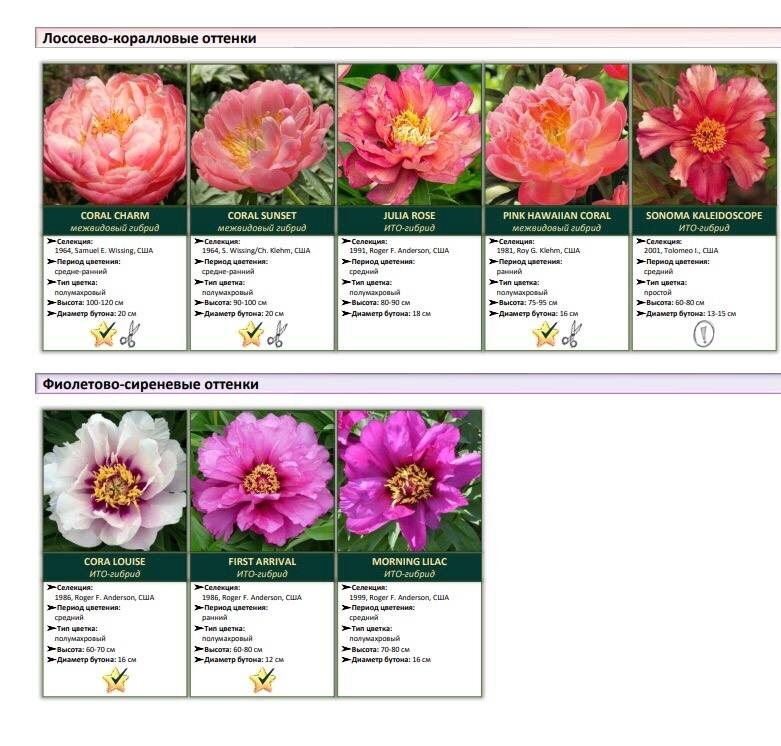 Специальный справочный каталог по цветовым коллекциям с дополнительной информацией по сортам. С ним вам будет легче ориентироваться в цветовой гамме пиона. Берите на заметку!