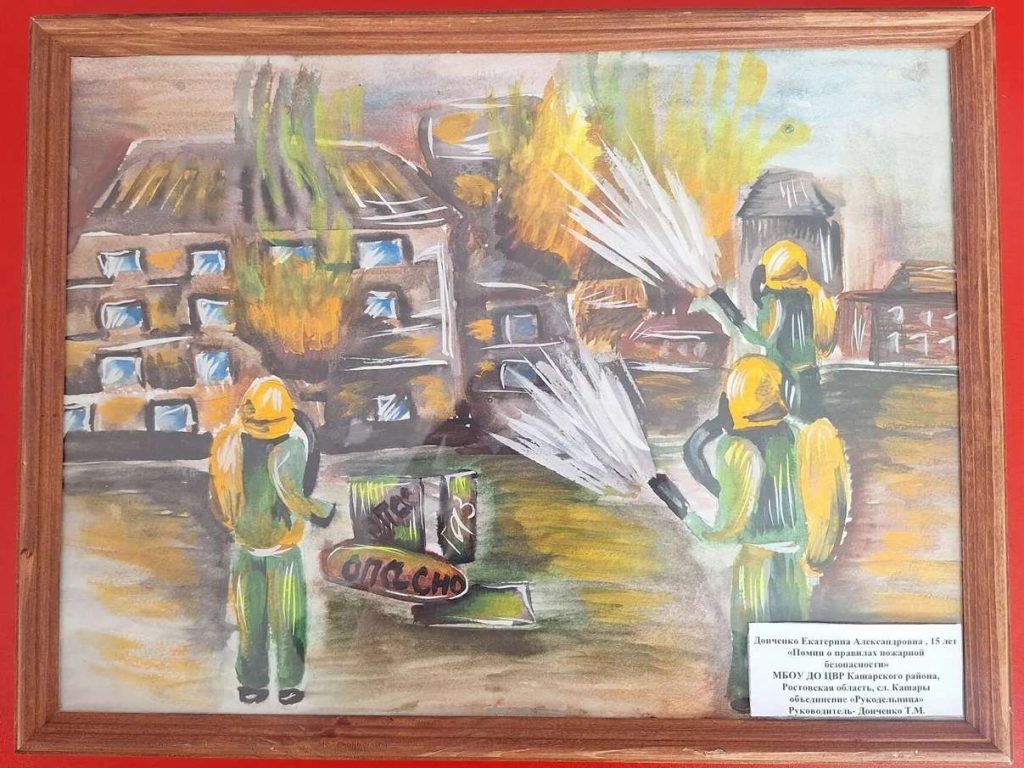 Обучающиеся центра внешкольной работы Кашарского района приняли участие в муниципальном этапе конкурса детско-юношеского творчества по пожарной безопасности «Неопалимая купина». Конкурс направлен на воспитание гражданской ответственности в области пожарной безопасности и развитие творческого потенциала ребят. Свои работы представили юные кашарцы в двух номинациях. В художественно-изобразительном творчестве отличились Гладченко Кира («Спички детям не игрушка»), Колесниченко Екатерина («Одна спичка»), Чирская Мария («Когда бушует пламя…») и Донченко Екатерина («Помни о правилах пожарной безопасности»). В декоративно-прикладном творчестве — Черкасская Милана («Лесоохрана»), Матвеенко Елизавета («То пожарные спешат, потушить огонь хотят») и Бондаренко Матвей («Не играй с огнем»). — Такие конкурсы не просто раскрывают таланты детей, но и учат их главному: бережному отношению к жизни и пониманию того, как важно соблюдать правила безопасности. Наши ребята подошли к теме осознанно и с душой, и