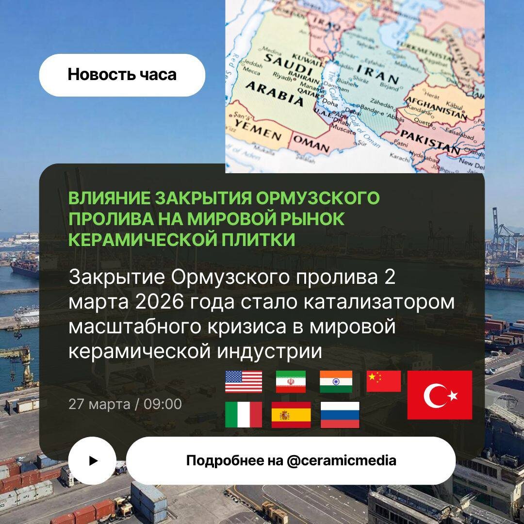 Эскалация конфликта на Ближнем Востоке после ударов по Ирану в марте 2026 года фактически перекроила рынок мировой торговли керамикой. 1. Индия: эпицентр коллапса Статус: критический / почти полная остановка Последствия: город Морби оказался на грани краха. С перекрытием морского пути через Ормузский пролив поставки пропана (на нём работает 70% печей) полностью прекратились. Ключевые данные: - 90% печей остановлены или переведены в режим аварийного охлаждения. - Gujarat Gas (GGL) объявила форс-мажор, сократив поставки природного газа на 70%. - Более 18 000 экспортных контейнеров застряли в портах из-за трёхкратного роста военных страховых надбавок. Прогноз: экспортные обязательства Индии перед странами MENA и США переориентируются на Китай и Турцию. 2. Италия: ловушка энергетической инфляции Статус: работает, но маржа под угрозой Последствия: производители столкнулись с «кризисом себестоимости». Несмотря на удалённость от конфликта, потеря катарского СПГ (блокированного в Ормузе)
