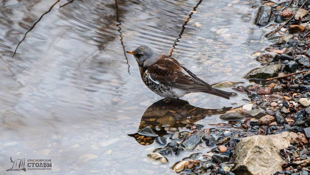 В нацпарке «Красноярские Столбы» засняли первое весеннее купание птиц. В объектив фотографа Андрея Бородкина попали дрозд-рябинник, щегол, снегирь и чечетка, которая лишь наблюдала за купанием других. Сотрудники нацпарка отмечают, что перелётные птицы пока что не спешат возвращаться, так как на «Столбах» ещё много снега. — «Пока перелетные птицы, увы, не спешат радовать нас своим присутствием. На Центральных Столбах полно снега, который даже не думает оседать. Надежда Гончарова, методист нацпарка «Красноярские Столбы» Также возвращаться на Центральные Столбы не спешит возвращаться местная знаменитость — глухарь. Сейчас он продолжает встречать туристов около скалы Перья. Материалы по теме: Редкий лебедь-кликун прилетел в Красноярск и остался почти на год Какие птицы зимуют на «Красноярских Столбах» фото: @npkrasstolby