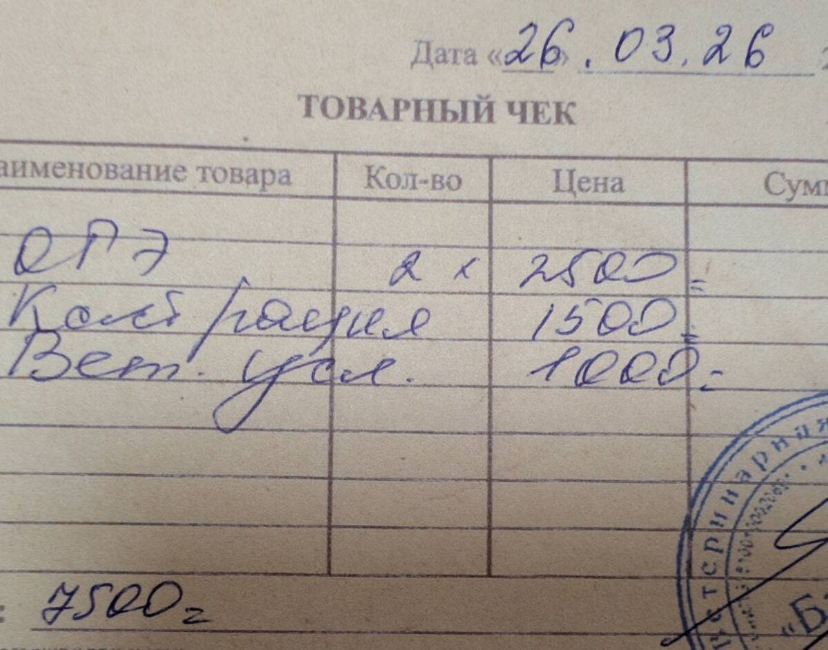Счет оплата за стерилизацию троих и за пастпорт