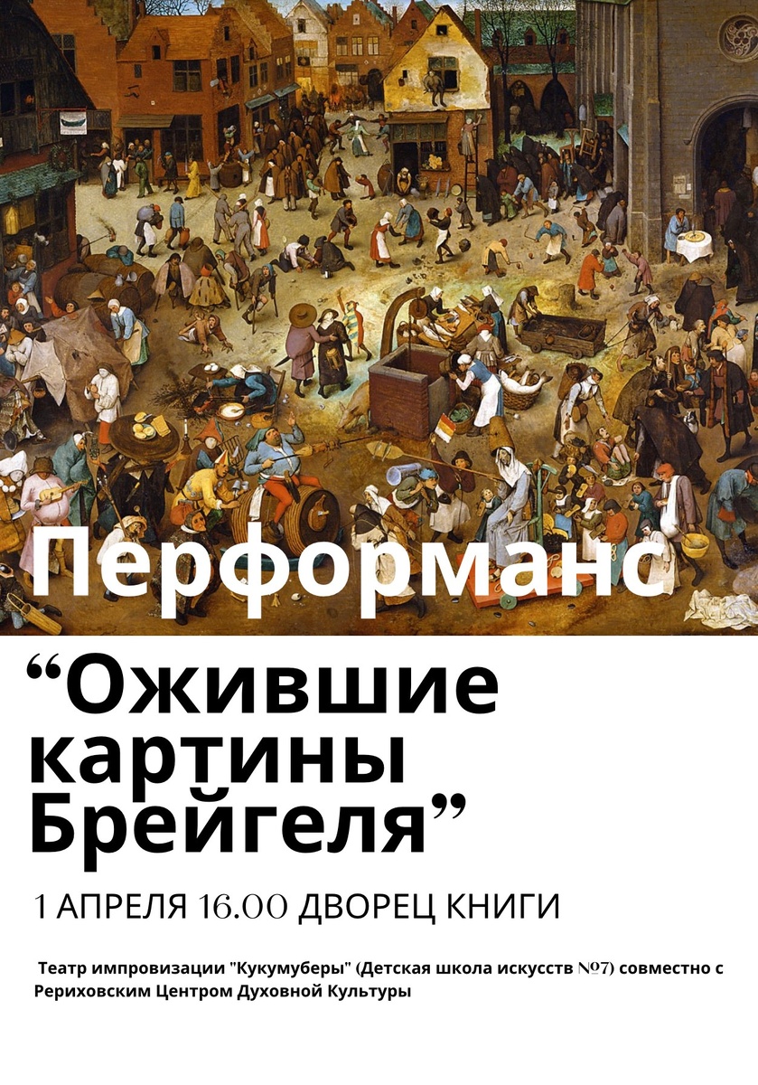 π 1 Π°ΠΏΡΠ΅Π»Ρ Π² 16:00 Π² ΠΠ°ΠΌΠΈΠ½Π½ΠΎΠΌ Π·Π°Π»Π΅ ΠΠ²ΠΎΡΡΠ° ΠΊΠ½ΠΈΠ³ΠΈ ΠΏΠΎΡΠ΅ΡΠΈΡΠ΅Π»Π΅ΠΉ ΠΆΠ΄Π΅Ρ ΠΏΠ΅ΡΡΠΎΡΠΌΠ°Π½Ρ Β«ΠΠΆΠΈΠ²ΡΠΈΠ΅ ΠΊΠ°ΡΡΠΈΠ½Ρ ΠΡΠ΅ΠΉΠ³Π΅Π»ΡΒ» (12+) ΠΎΡ ΡΠ΅Π°ΡΡΠ° ΠΈΠΌΠΏΡΠΎΠ²ΠΈΠ·Π°ΡΠΈΠΉ