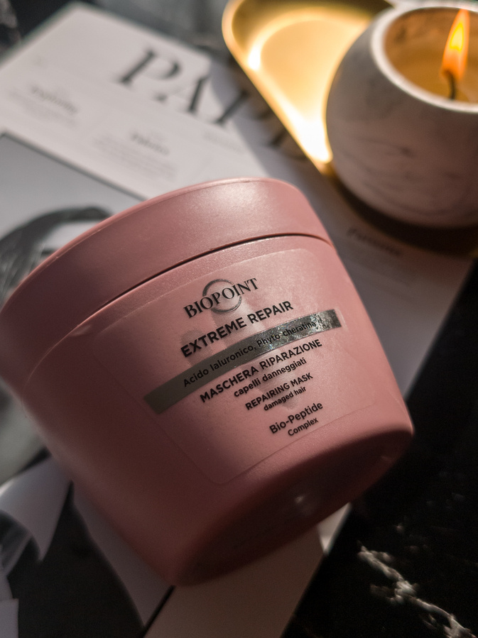 Здравствуйте!) А я к вам с отзывом на маску для волос от профессионального итальянского бренда Biopoint. Она направлена на экстремальное восстановление волос, разглаживание их структуры и кутикулы. Внешний вид. Очень тяжёлая баночка из какого ультра плотного пластика, притом, что объём тут всего лишь 200мл. Никакой информации о производителе или составе на этикетках нет, есть только способ применения и то на итальянском. Состав я с удовольствием добавлю ниже, он потрясающий! На первых позициях находятся церамиды, гликолипиды, фосфолипиды, олигопептиды, гликопротеины, масло, стеролы и протеины сои, рисовые протеины, пшеничные. Все эти компоненты должны работать на восстановление волос. Также есть увлажнители: гиалуроновая кислота, аминокислоты и глицерин. Ну и силикон, чтобы создать на волосах защитную плёнку. У маски густая, кремовая, но не плотная консистенция без избыточной «силиконистости». Она почти не стекает с волос в ванную и хорошо их обволакивает. И еще в ней как будто бы прис