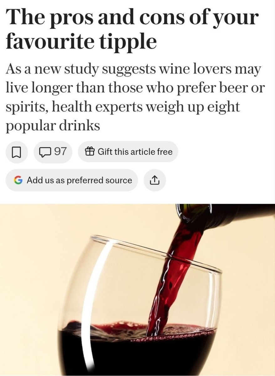 У любителей вина риск смерти от сердечных заболеваний на 21% ниже, чем у непьющих. Дело и в культуре потребления: виноманы чаще выбирают полезные закуски (сыры, овощи, фрукты). ➡️ Само вино помогает снижать напряжение и поддерживает сосуды, а сухое красное ещё и содержит меньше сахара, чем коктейли или пиво. Подписаться на Регион 181 | МАХ ⚡️