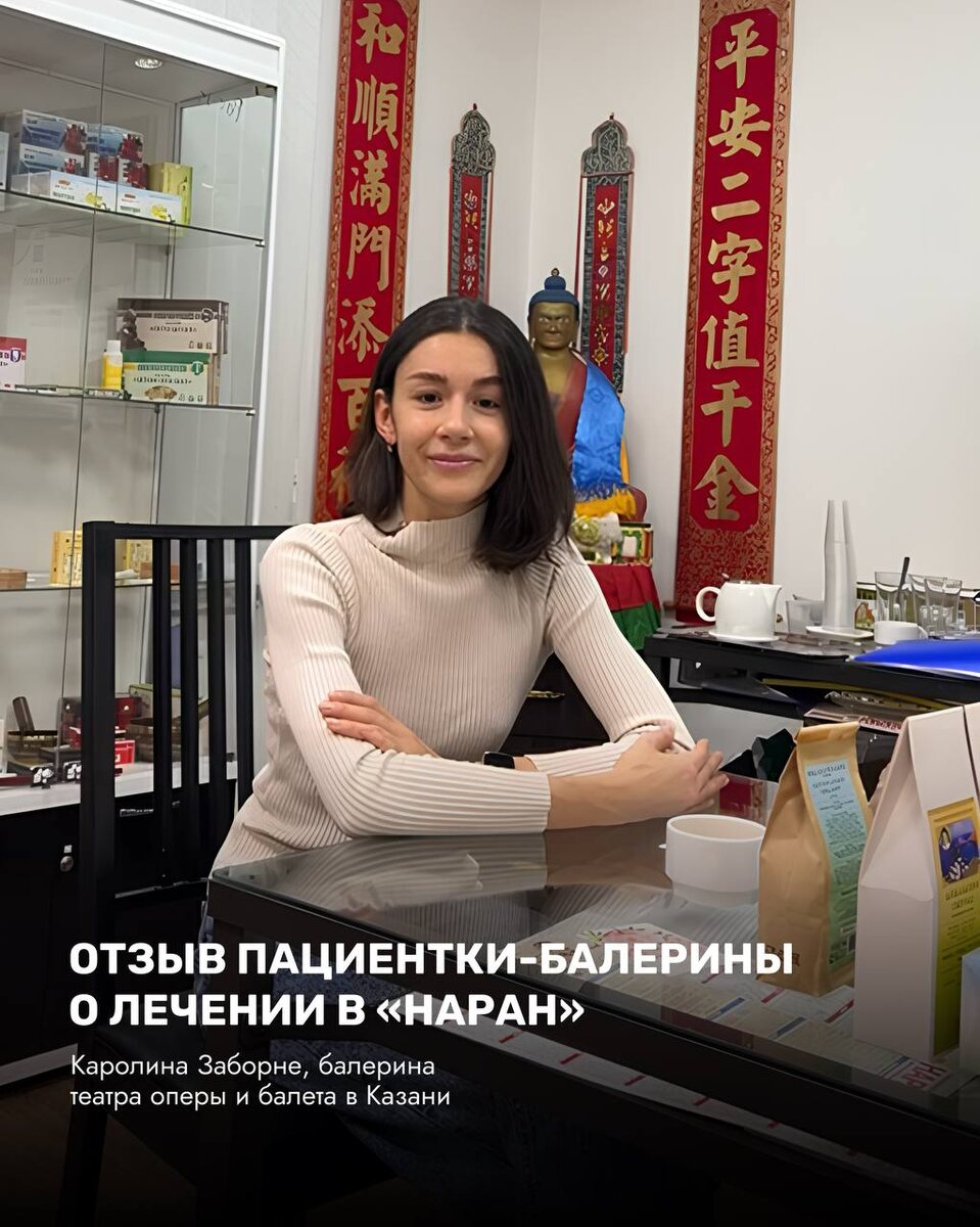 ! 📍Каролина переехала в Россию из солнечной Бразилии 9 лет назад и уже давно связала свою жизнь с прекрасным искусством балета. Как отмечает сама пациентка, балет — это постоянные тренировки, репетиции и выступления, а значит, и большие нагрузки, боли в спине и ногах, которыми знакомы многие танцовщики. 💬 «О клинике Наран я узнала по рекомендации коллеги с работы, — рассказывает Каролина. — Меня очень порадовало, что клиника находится совсем рядом с театром: теперь я могу посещать процедуры регулярно и поддерживать спину и ноги в хорошем состоянии!» Врач Санал Юрьевич разработал для Каролины комплексную программу: массаж, иглоукалывание, банки, мануальная терапия — всё это помогает справляться с болью и сохранять лёгкость движений, такие нужные балерине! «Мне очень нравится атмосфера в Наран — здесь всегда спокойно, уютно, я могу полностью расслабиться и восстановиться перед спектаклями. И нравится результат после посещений! Я от души всегда рекомендую эту клинику своим друзьям и