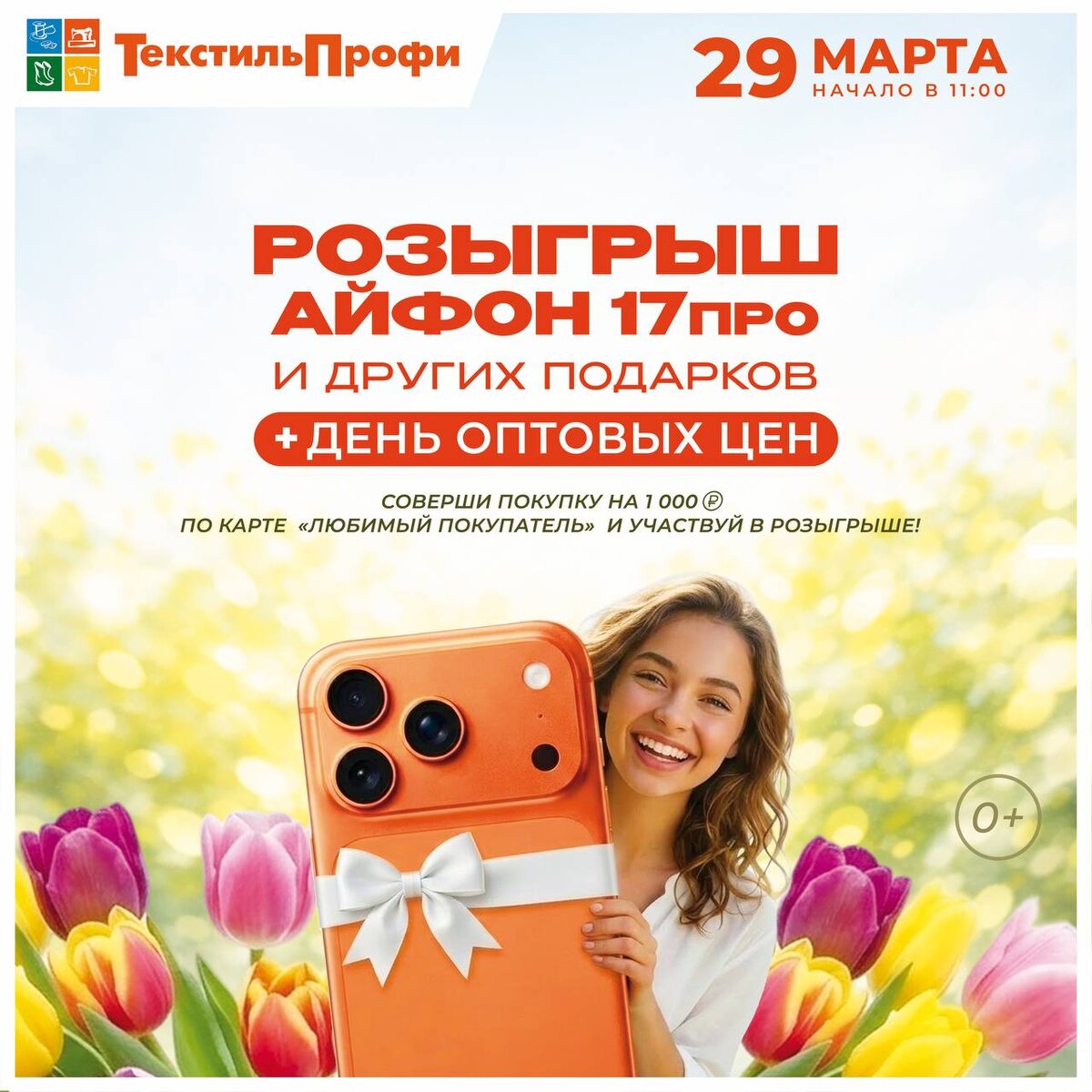 🎉 🕗 29 марта с 8:00 до 10.45 уже можно опустить свои купоны в барабан! Разыграем: ✅Яндекс-станцию ✅Утюг ✅Фен ✅Блендер ✅Текстильные призы (одеяло, подушка, полотенце) Атмосферу праздника создадут: 🎵 концерт с участием кавер-группы 🎈 анимационная программа 🍬 угощения для гостей На весь ассортимент в этот день будут действовать ОПТОВЫЕ ЦЕНЫ! Приходите на розыгрыш — не упустите свой шанс выиграть подарок и погрузиться в праздничное настроение вместе с нами! 📜 Условия акции читайте здесь —> https://t.me/textilprofi37/3058