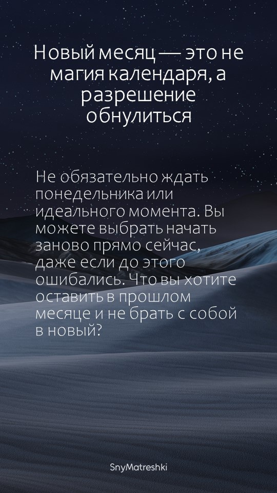 В повседневной суете мы часто теряем контакт с тем, что чувствуем и о чём на самом деле думаем. Эта рубрика — короткие напоминания, которые помогают остановиться и прислушаться к себе. Здесь нет готовых решений, только повод заглянуть внутрь и задать честный вопрос. Читайте, делайте паузу, дышите. И пусть каждый день будет чуть ближе к вам настоящему. Поддержать автора Александра Бóгдан,
