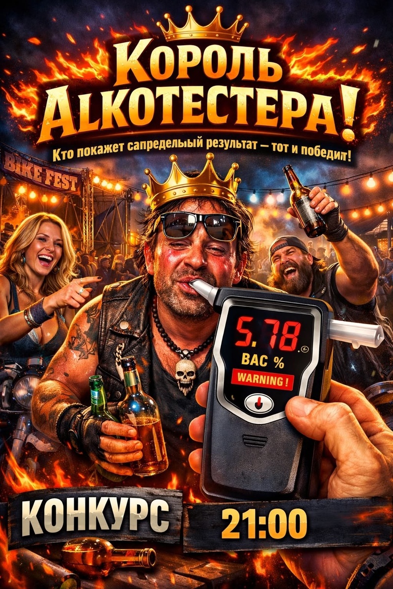 ) 😁 Друзья, продолжаем проводить наш традиционный конкурс! 5го июня в пятницу на фестивале в 21:00 вечера мы определим, кто из вас самый настоящий 'король' алкотестера! Победит тот, у кого промилле на алкотестере будет 'сверхъестественным'! 🍻🏆