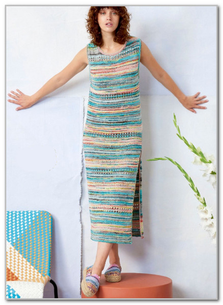 Перевод из журнала "Stickat & Sånt", № 2, 2026 г. Праздничное нарядное платье из разноцветной пряжи! Пряжа этого элегантного платья состоит из белой хлопковой основы, плотно переплетенной с разноцветной нейлоновой нитью.