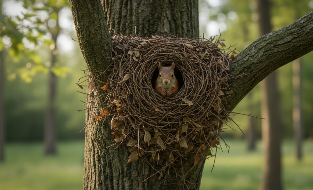 Это не лишено смысла: белки действительно могут использовать чердак как убежище. Там сухо, тепло, безопасно, есть балки, укрытия и иногда удобный вход через щель. Для животного это вполне подходящая замена естественной полости.