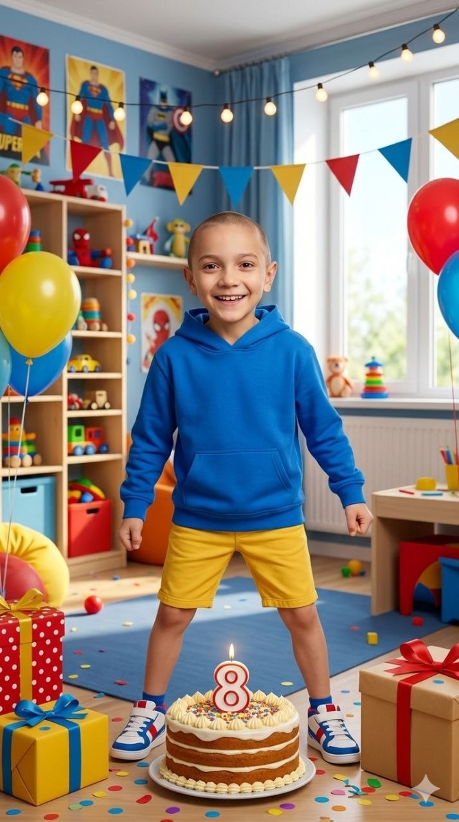 , И в доме радость расцвела. Тебе исполнилось восемь лет — Как будто сказка ожила. Пусть смех твой звонко разливается, Как солнечный весенний свет, Пусть всё, что хочешь, получается, И будет добрым каждый след. Расти смышлёным, сильным, смелым, С душой открытой и большой. И пусть тебя по белу свету Всегда ведёт успех с мечтой.