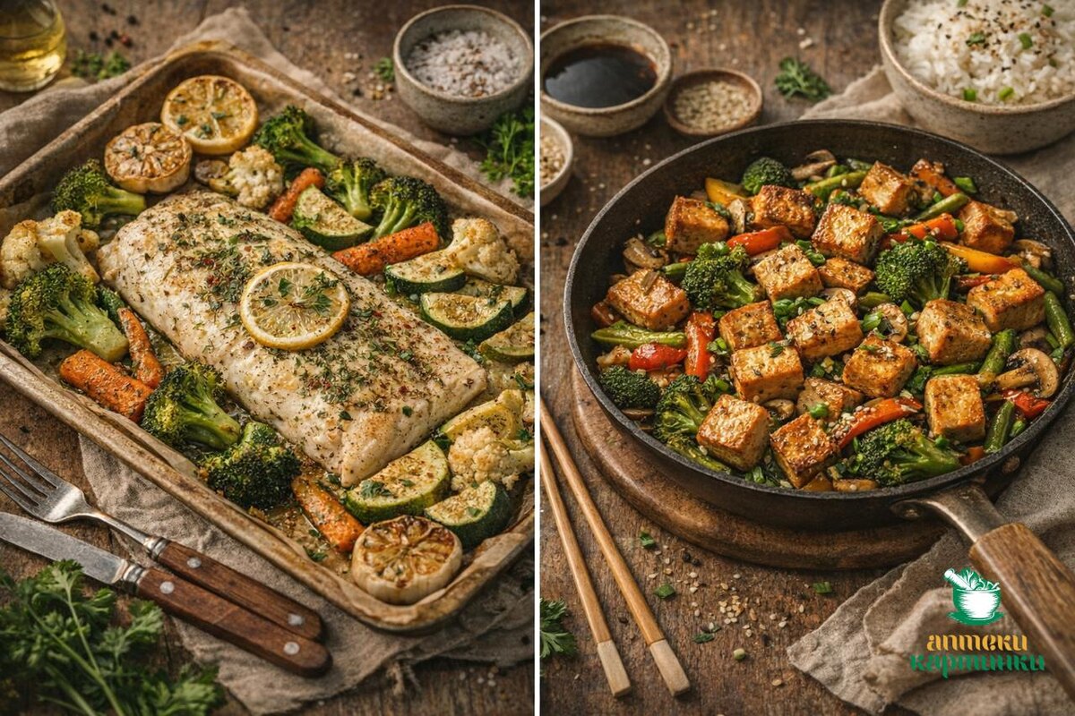 ? Есть такой вариант 😌 Вот 2 идеи ужина: легко, сытно и без лишней тяжести. 1️⃣ Рыба + тёплые овощи Что взять: ➖ филе рыбы ➖ брокколи, кабачок, морковь или цветную капусту ➖ немного оливкового масла ➖ соль, травы Что делаем: рыбу запечь или обжарить без лишнего масла, овощи — потушить или запечь рядом. Получается ужин с белком и овощами — сытно, но без ощущения, что Вы случайно поужинали “как на праздник”. 2️⃣ Тофу + овощи на сковороде Что взять: ➖ тофу ➖ болгарский перец, брокколи, грибы, стручковую фасоль ➖ немного соевого соуса ➖ каплю масла Что делаем: обжарить тофу до лёгкой корочки, добавить овощи и быстро довести до готовности. Это хороший вариант, когда хочется чего-то тёплого, быстрого и без тяжести к вечеру. 💚 Если в ужине есть белок + овощи, он обычно насыщает лучше и переносится легче, чем случайный набор “что попалось под руку”. Сохраняйте себе — пригодится для вечеров, когда хочется и поесть нормально, и не перегрузить себя ✨ #ужин #зожрецепты #полезноепитани