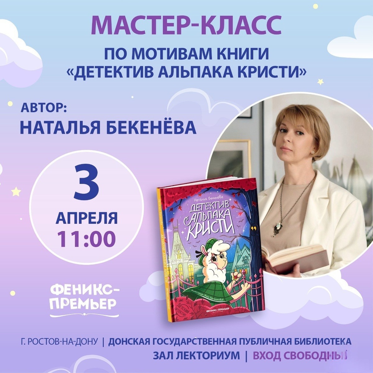 » 🔺 3 апреля, 11:00-12:00 🔺 Кинозал ДГПБ 🔺 Вход свободный, 6+ В дни школьных каникул приглашаем учащихся начальных классов и их родителей на творческую встречу писательницей Наталья Бекенёвой, которая проведёт презентацию книги «Детектив Альпака Кристи» в интерактивном для аудитории младшего возраста формате. Детский детектив — это особый жанр, где главные герои — дети, которые раскрывают загадки и тайны. В отличие от взрослых детективов, сюжеты здесь проще, а атмосфера наполнена волшебством и приключениями. Детский детектив для мальчиков и детский детектив для девочек помогает учиться новому, развивать воображение и расширять кругозор. Книги детективного жанра — это не только интересный способ провести время, но и полезный инструмент для развития навыков чтения, понимания и анализа. 🫠 Детские мероприятия Ростов-на-Дону. Я местный! 📲 Мероприятия Ростов-на-Дону. Я местный! в MAX