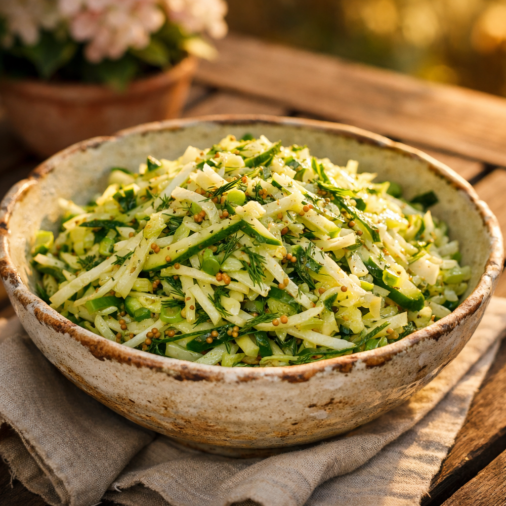 Вы бы слышали, как этот салат хрустит! Капуста нежная, но упругая, огурец дает потрясающую свежесть, а заправка... Это просто песня! Легкая кислинка лимона, мягкая сладость меда и пикантные зернышки горчицы, которые так приятно лопаются на языке. Этот простой салат из капусты идеально дополняет любое блюдо, будь то жареная картошечка, кусочек мяса или рыбы. Но честно говоря, его можно есть просто так, с ломтиком свежего домашнего хлеба.