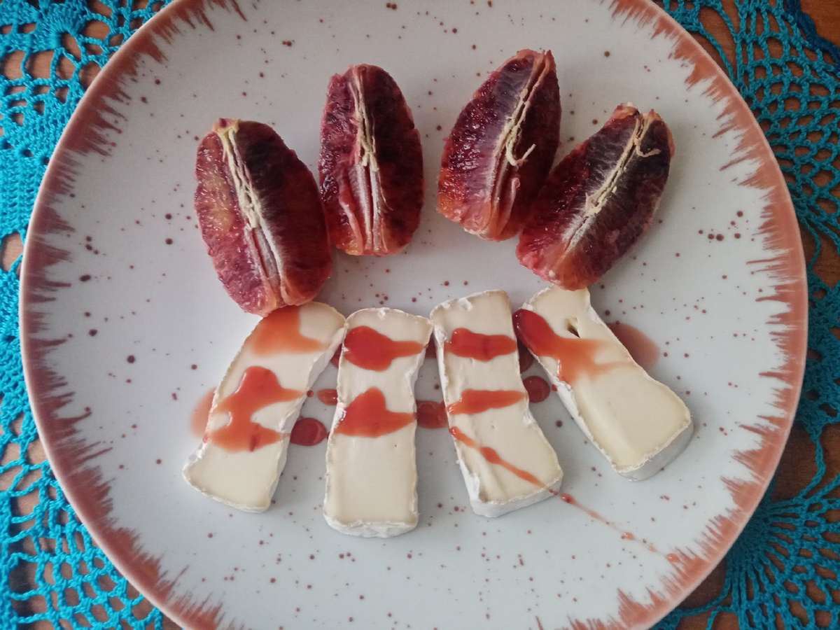 Вот этот, что на фото. Давайте посчитаем. Примерно, конечно, так как стоимость чайной ложки гранатового сиропа точно высчитывать лень. Итак, на фото кусочки сливочного сыра Суприм, красный апельсин сангвинелли и гранатовый сироп. Как и в феврале, в этом месяце я также купила три сыра Суприм, загрузила чек в приложение Юмани. Жду кэш. 60 рублей уже система вернула, скоро будут зачислены и остальные. Всего Юмани вернет 599 рублей. Стоимость трех сыров в Пятерочке - 780 рублей. Но, Пятерка еще вернула кэш за него - 71 + 13 = 84 рубля (840 апельсинок). Итого: 780 - 84 = 696 - 599 кэш = 97 рублей. Я отрезала примерно четвертую часть пачки, таким образом, потрачено на сыр 8 рублей. Вот из этой закупки. Вся она стоит 98 рублей, итоговую стоимость каждого товара Самокат не пересчитывает, поэтому просто разделю на 4 (четыре продукта в закупке было). Итого: на тарелке один красный апельсин, его стоимость - примерно 6 рублей. На ложку гранатового сока пусть будет 2 рубля (бутылочку покупала на
