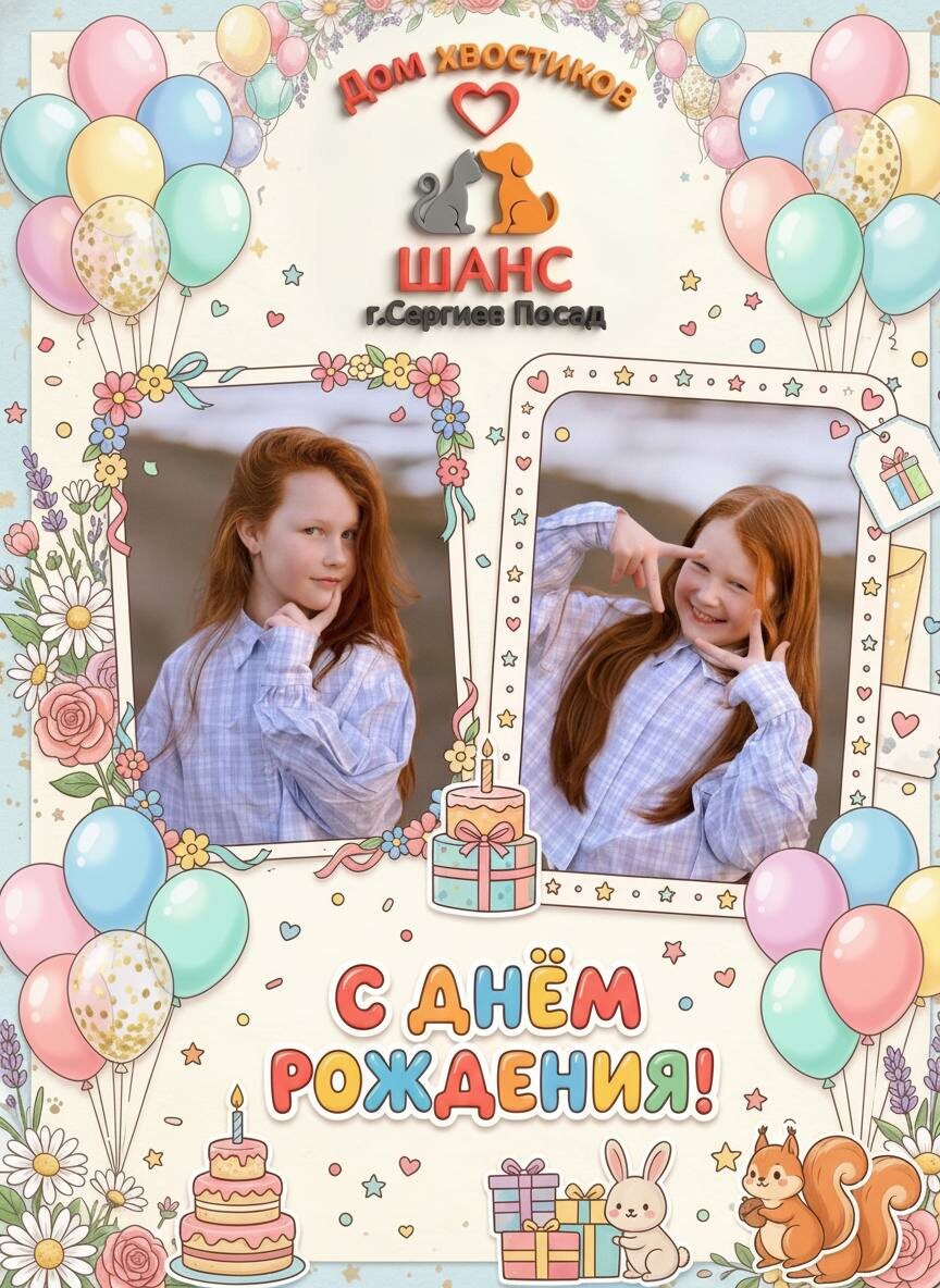 ! 🎂🐾 Сегодня у нас особенный праздник! Свой 10-й День рождения празднует наш самый юный, но такой ответственный волонтер — Маришка! 🎂🎉 Казалось бы, 10 лет — это время для игр и беззаботного детства, но наша Мариша доказывает, что доброта не зависит от возраста. Несмотря на свой юный возраст, она каждый день помогает нам заботиться о наших четвероногих шансожитетелях. В её руках миски с кормом стоят ровно, а хвостики от счастья виляют вдвойне, когда видят её! Маришка, поздравляем тебя с днём рождения! Желаем тебе море улыбок, верных друзей, отличной учёбы и чтобы все твои самые заветные мечты сбывались. Оставайся такой же чуткой, заботливой и жизнерадостной. Мы гордимся, что ты с нами! 💖 С днём рождения, наша маленькая звёздочка! ✨