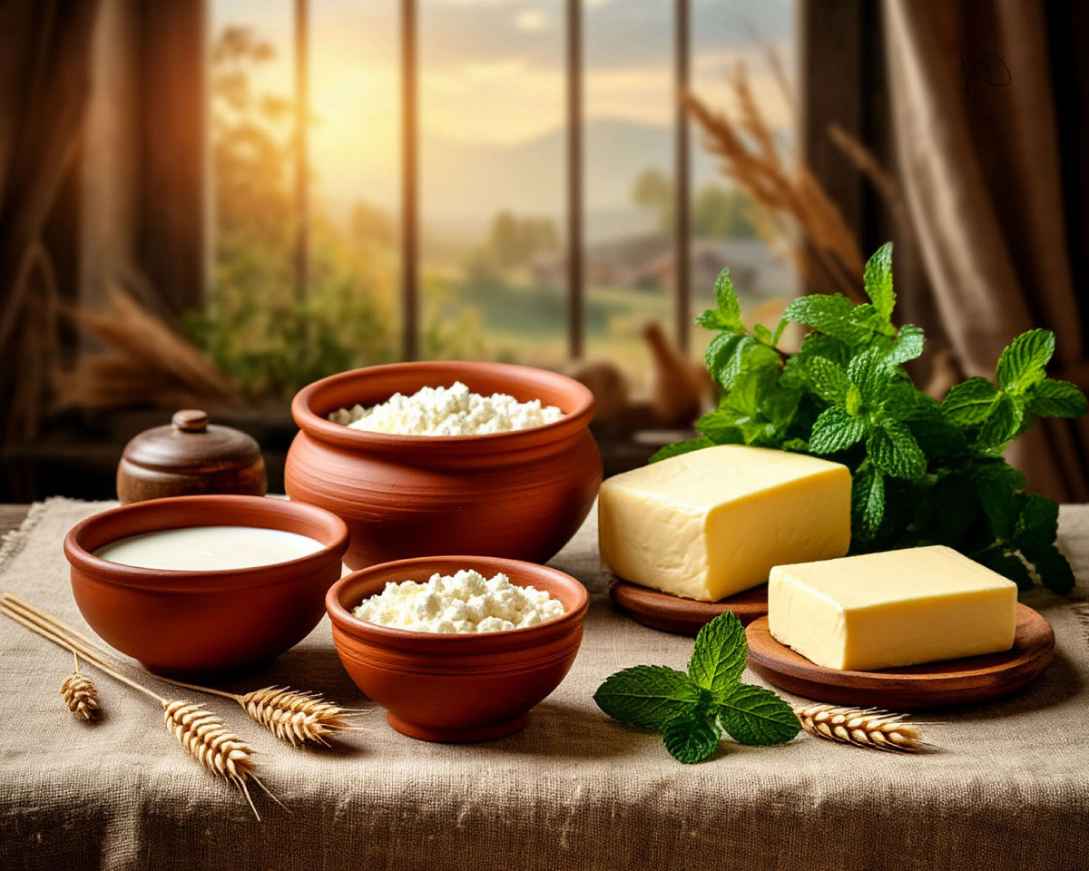 Молочные продукты испокон веков были основой русского стола. Сметану снимали с утра, творог топили в печи, масло сбивали вручную. И вкус был тот самый — живой, настоящий, без обмана.