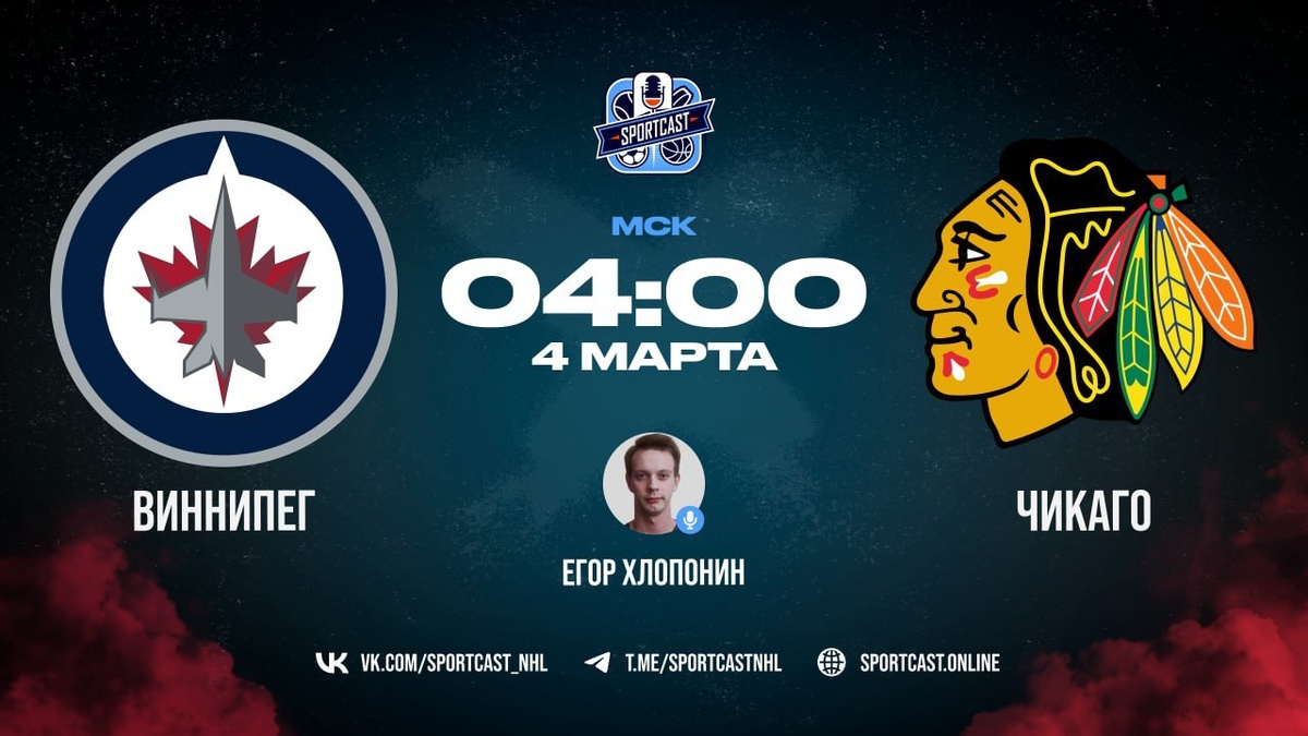 🏒 Обзор матча Виннипег Джетс против Чикаго Блэкхокс 🏒 (начало в 04:00 по московскому времени).