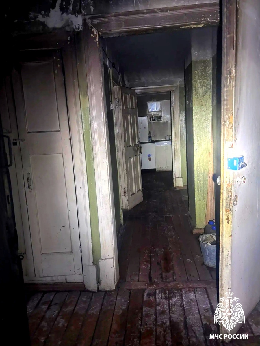 В результате пожара выгорела комната на площади 15 квадратных метров, квартира закопчена продуктами горения по всей площади.