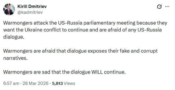 Warmongers attack US-Russia parliamentary meeting — special presidential envoy Kirill Dmitriev
