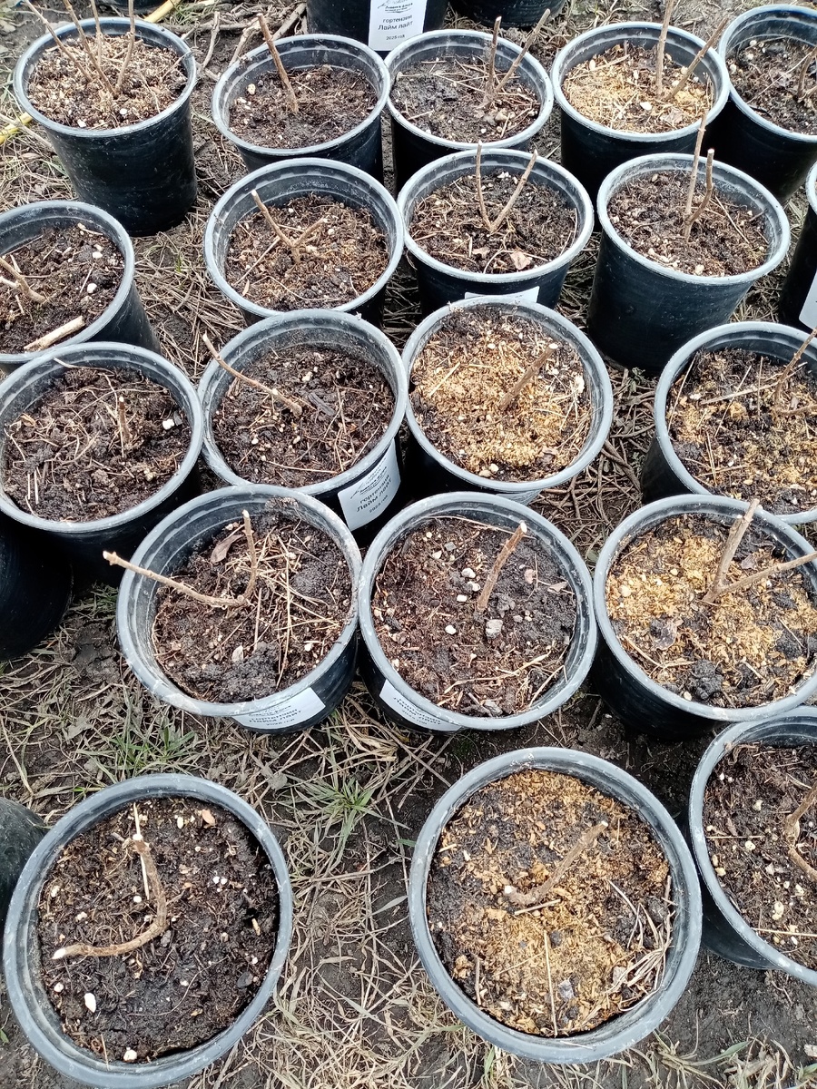Снег полностью сошёл. Не смотря на ночные холода, днем на солнце уже до 23 градусов, земля подсыхает и наконец можно начинать работать! Обрезаем гортензии, опрыскиваем бордосской смесью сад и питомник, моем горшки, клеим этикетки... Подравниваем площадку песком. Не идеально, но намного ровнее, чем в прошлом году. Первый ряд - гортензии - почти готов. Очень нравится ставить их по алфавиту - Анабель, Бобо, Ванила фрайз и т.д. Горшки отмывать - очень муторно занятие, больше никогда не будем закапывать их в землю. А уж какие они тяжёлые после снежной зимы.... Зацветают первые весенние мелколуковичные - хионодоксы, крокусы, мускари.... Какие же они чудесные - как игрушечные! Из кустарников первые листочки выдала лапчатка. И лимонный чабрец красавчик, прямо из под снега - с красными листочками, которые позже станут вариегатными - зелеными с желтой каймой. В остальном пока тишина не смотря на конец марта. Ну и посевы - их уже днем выносим на улицу, вечером - обратно. Дельфиниумы, незабудки,