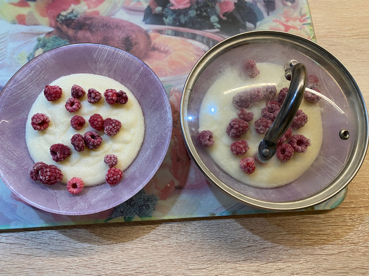 Достала малину из заморозки и вот сейчас у меня будет уже второй завтрак , так как время уже 11-30 .
