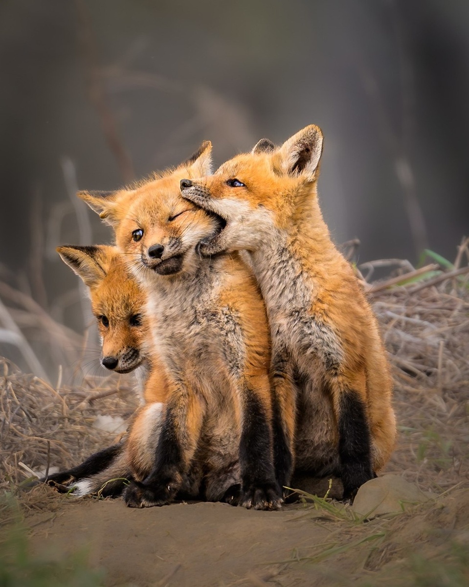 Снимок был сделан в лесу в районе города Рочестер в американском штате Миннесота. Искатель несколько дней наблюдал за лисятами. И вот ему посчастливилось поймать милейший момент их игры. Красота!