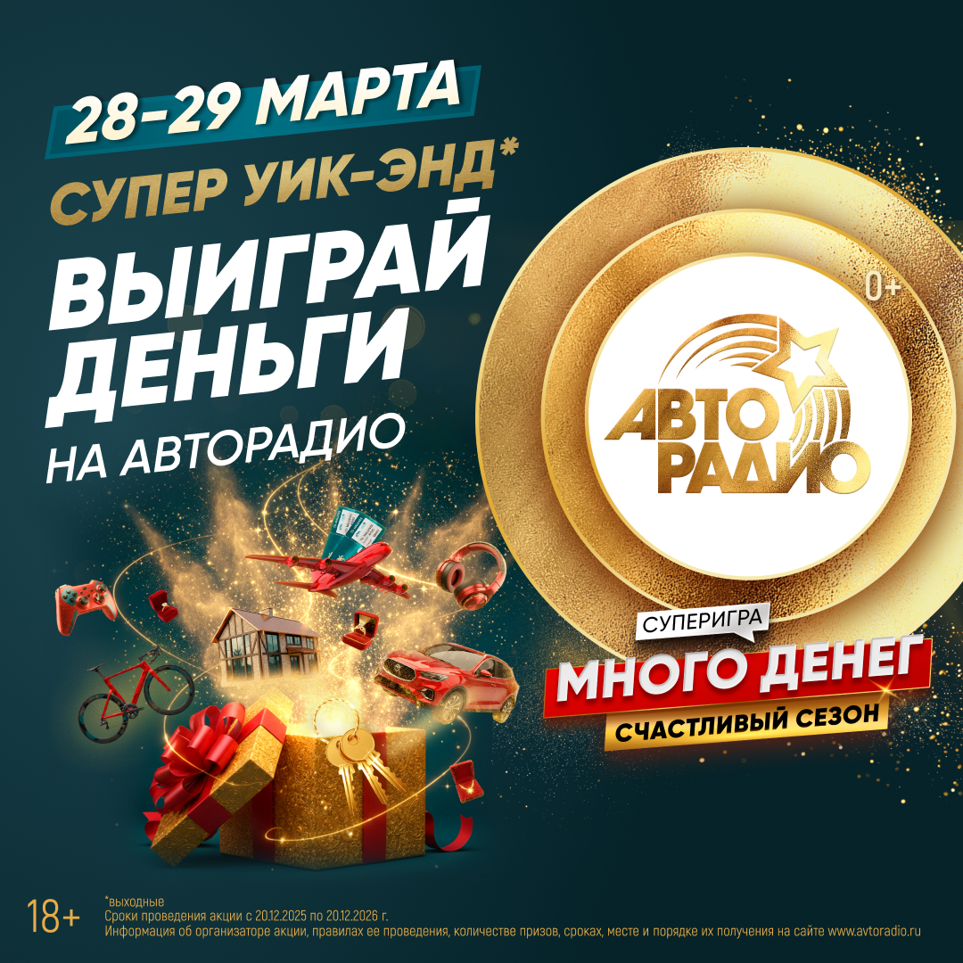 28 и 29 марта игра «Много денег на Авторадио. Счастливый сезон» будет проходить каждый час. В эти выходные хиты «Авторадио» принесут слушателям действительно много денег. В рамках своего фирменного проекта мы объявляем Супер Уик-Энд. 28 и 29 марта игра «Много денег» будет проходить в турборежиме – розыгрыши с утра и до вечера каждый час. Достаточно заменить гудки в телефоне на гимн «Авторадио»* на сайте, дождаться звонка ведущего и верно назвать прозвучавшую песню. Как повысить шансы на победу? Провести весь уик-энд с «Авторадио» – слушать в автомобиле, дома или на даче через умные колонки, приёмники, смарт-ТВ. Если же такой возможности нет, радиостанцию можно включить в приложении. Супер Уик-Энд не только сделает многих участников богаче, но и приблизит суперфинал, где 2 апреля Авторадио исполнит мечту одного из участников игры. * Участие в игре не требует от слушателей каких-либо переводов денежных средств, за исключением оплаты (если такая взимается) услуги операторов связи по уста