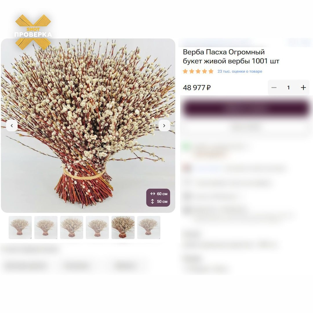 В этом году православный праздник отметят 5 апреля В интернете появилось эксклюзивное предложение: букет из 1001 веточки вербы почти за 50 000 рублей. Продавец уверяет — верба качественная, не осыпается. При желании её можно разделить на несколько небольших связок. Как вам такой букетик? 👎 — Как-то не по-христиански ❤️ — Зато на всю родню хватит 🤩 SHOT ПРОВЕРКА в MAX — подписывайся