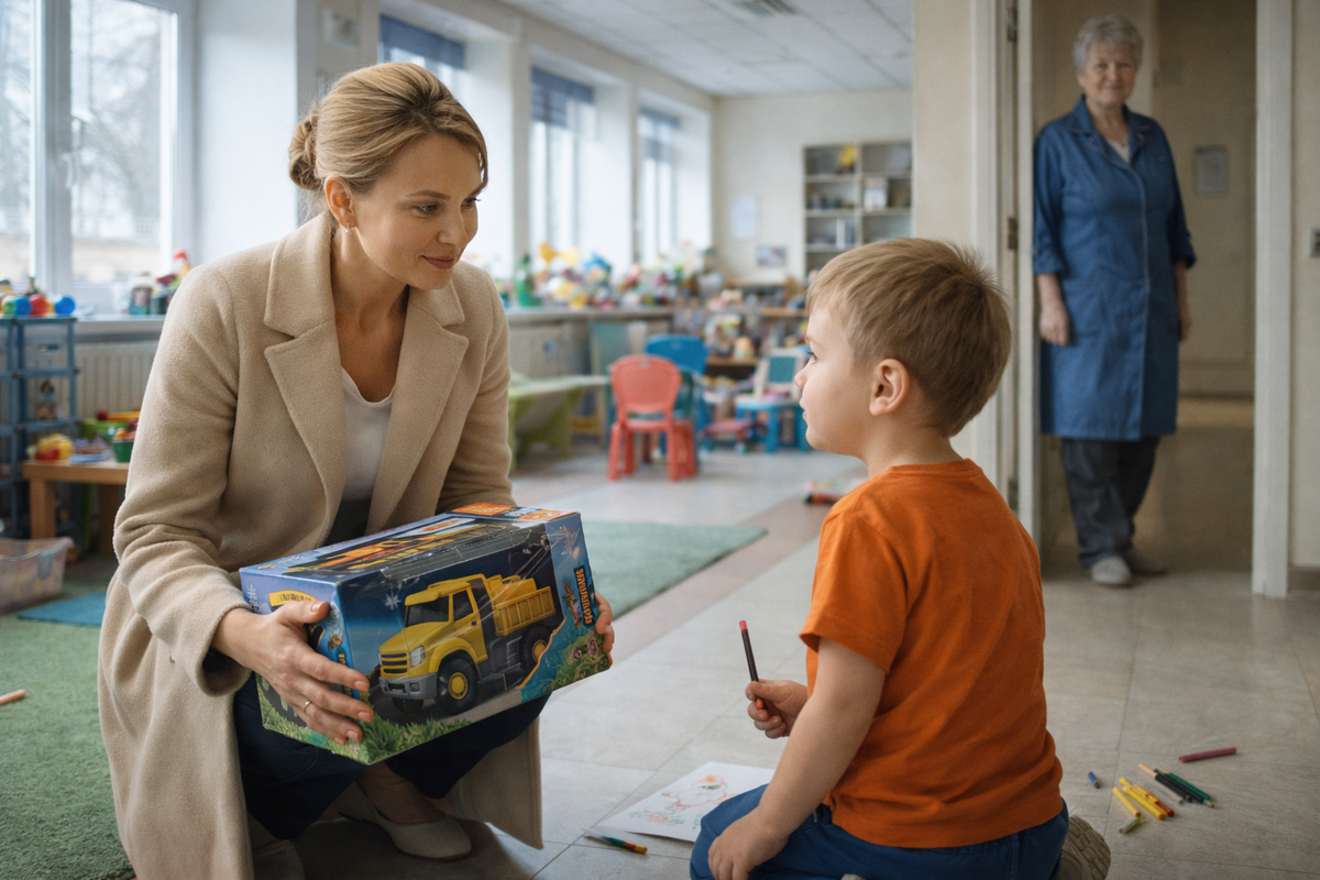 Когда Кристина вошла в игровую комнату, трехлетний Матвей сидел на полу и рисовал. Кристина присела на корточки, протянула ему большую коробку с машинкой на радиоуправлении и улыбнулась.